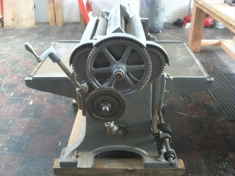 24" Crescent Planer. Number 124. Circa 1910. Beds and Ways re-machined and trued. New cutter head bearings. All bolts and pins re-placed. Newly machined oil-cup covers. Knives sharpened. Re-painted. Electric motor mounts, drive shaft, and motors incl. Feed motor: 1ph, 3hp, 115/230v Cutter-head motor: 3ph, 5hp, 230/460v