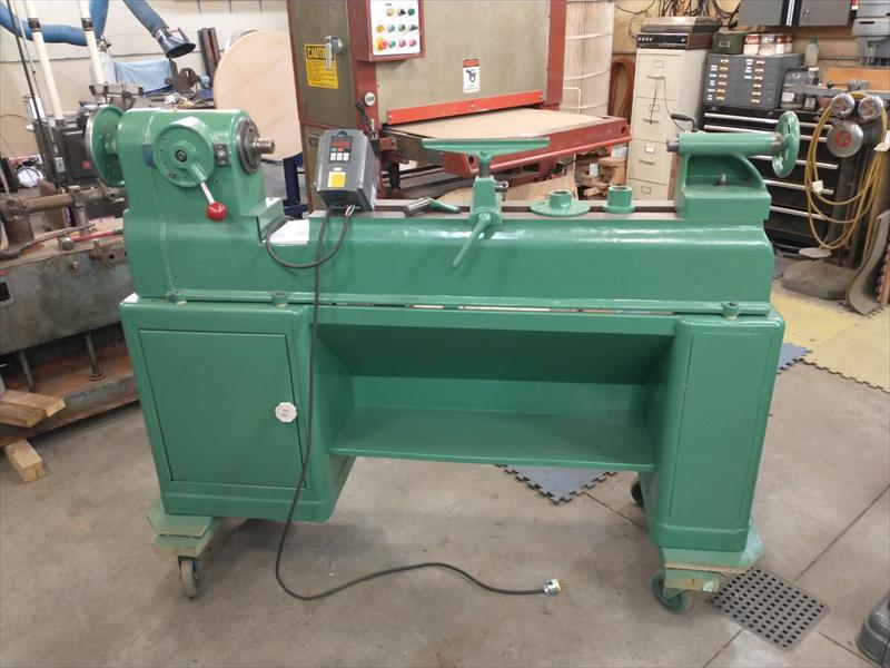 Restored Powermatic 90 Gap Bed wood lathe. Completely dismantled, cleaned, blasted, painted, new bearings, and equipped with a VFD to allow operation with single phase 220-240 V power. Comes with 12" and 6" tool rests, 3.5" and 6" face plates, and outboard face plate. This is the low speed model that can turn as fast as 2250 RPM. The VFD can be programmed to go above 60 Hz to give a higher top speed, if desired. The low speed via the Reeves drive is 550 RPM, however the speed can be further reduced with the VFD. I can crate and ship it at buyers expense. |
