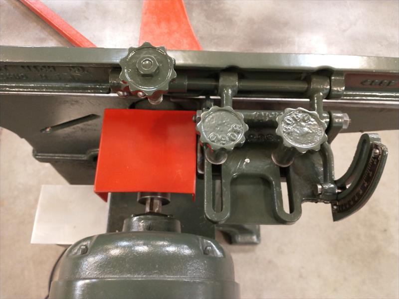 Restored 1940's vintage Crescent 8" x 40" Jointer. Machine has been completely dismantled, blasted, painted, new bearings. Original open bearings have been replaced with sealed ones. It is complete with original blade guard and 1 Hp motor. It is equipped with a four knife cutter head. The bed is 40 " long. A VFD has been added to allow running the three phase motor on single phase 240 V power. Nothing is missing, broken, or broken and repaired. This model has a very unique three legged cast iron stand. I can crate it and ship it at buyers expense. Delivery is also an option at buyers expense. It is located in Sanford, MI 48657 |