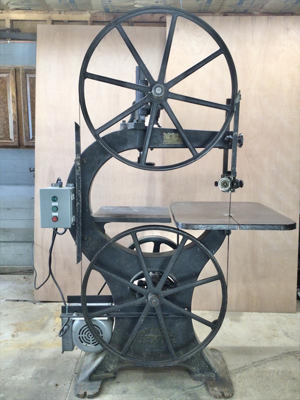 Crescent Machine Co. Leetonia Ohio 32” Band Saw manufactured in 1904 with serial number 4234. I acquired the saw and installed new tires and a 2 hp single phase 230 volt motor along with a magnetic motor starter. It runs very well. |