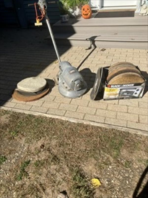 Old American Deluxe floor sander with driving pad,assorted brushes and pad great shape for its age |