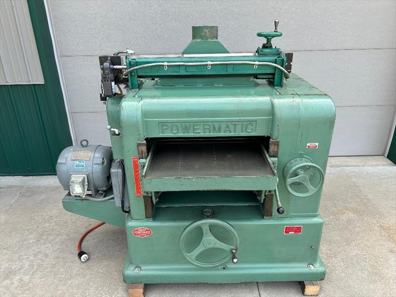 Powermatic model 225-B 24" planer. This is a 60's era planer in very good condition with original paint. 7 1/2 hp 208/220/440 volt 3 phase motor. 4 knife cutter head with new knives. New cutter head bearings, motor pulley belts and a new speed reduction belt. I have completely cleaned, greased and adjusted it to factory specifications. It cuts like butter. The grinder bar has been retrofitted for an electric motor for moving the grinder from side to side while grinding. Has limit switches on each side to stop it. If you don't like the electric motor on the grinding bar, I will throw in a handle to crank it by hand. Comes with the grinder motor shown. Never been used in a production shop. You will be hard pressed to find a cleaner 60's era model 225 in this condition. I can load on your truck or trailer or crate and ship at the buyers expense. |