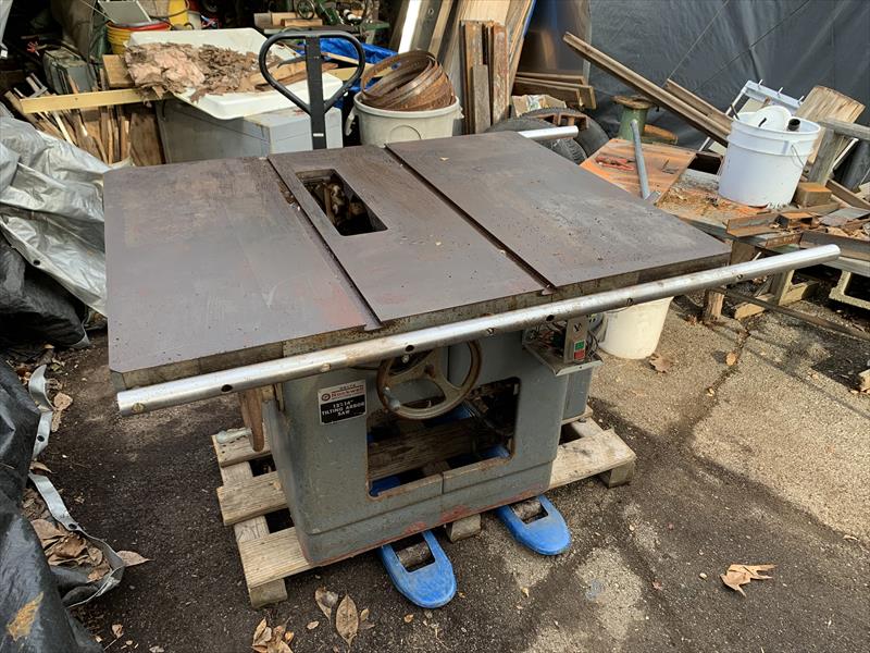This saw came out of a public school woodshop in New Jersey. I was told it was running when it was pulled out of service, but I haven't been able to figure out how the switch should be wired (honestly, I haven't tried too hard), it seems complicated due to the Baldor Dynamic Brake wired into it. It's missing a couple parts, like the throat plate (if that's what it's called), a front and back cabinet plate, and the fence (not shown in photo) is incomplete. I bought three of these, I'm keeping one for myself, giving one to a friend, and this one is just taking up space in my driveway. Ask questions if you got them. Make an offer if you like, I may end up selling it for scrap before winter gets here. |