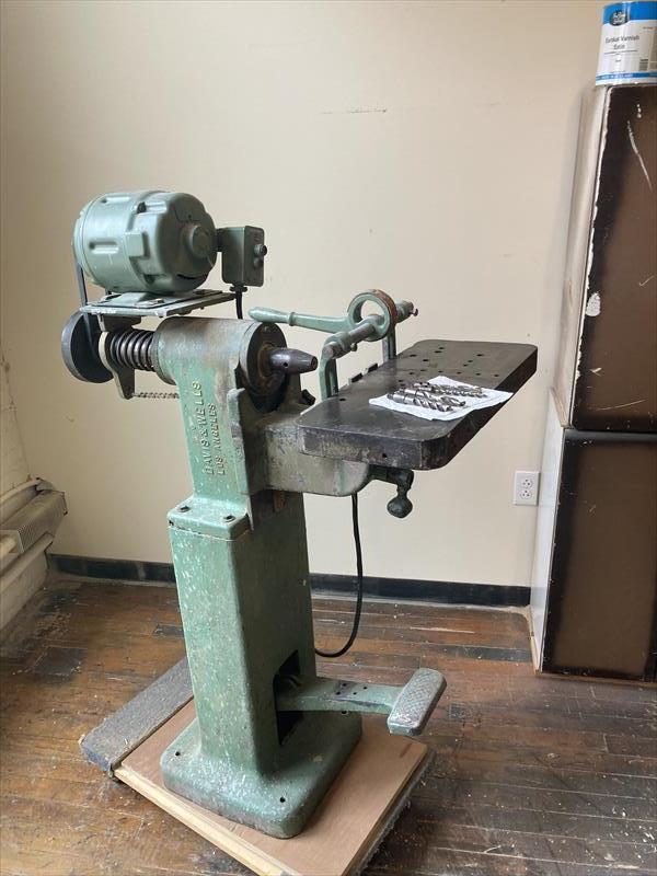 Horizontal boring machine of unknown vintage. Possibly 1940's? Excellent running condition. 4 drill bits included. 1/2 HP motor w belt drive. I have owned this tool since about 1992. Rarely used by me but when I have used it it has worked brilliantly. See photos. |