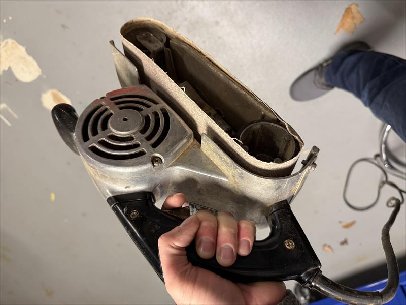 Vintage 1959-1962 belt sander. Works great, could absolutely be put on the job tomorrow and produce major results. Made by the American Tool Co. a division of American Lincoln Corp of Toledo, OH. This company was producing products for Sears before branching out (and failing) on their own. Machine is in working condition, but obviously from 1960 so look at the photos and decide for yourself. Comes with extra sandpaper belts of questionable age. |