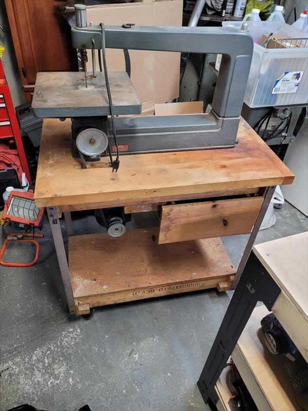 Nice used scroll saw. 18inch. Comes with 1/6th hp motor. Works great. Comes with many extra new and used blades. My grandfather made the table. Does unbolt for ease of transport. I've had this 13 years. I've used this with him in the 80s also. Any questions feel free to ask. Possible to part out and ship. |