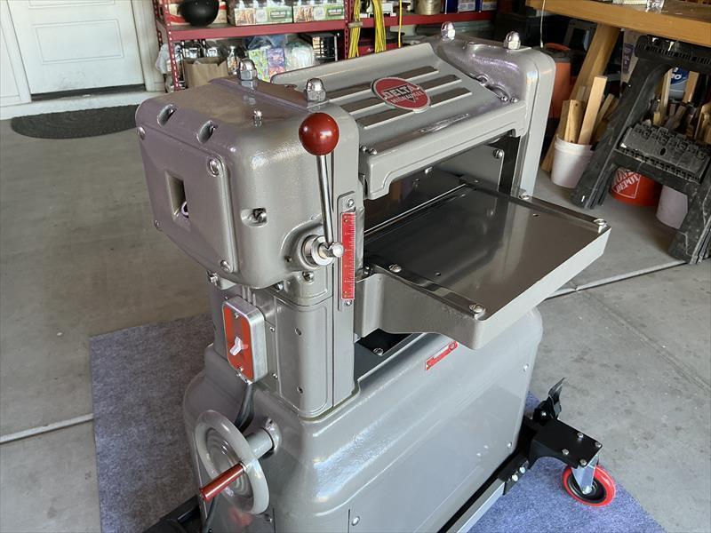 The 5” wheels on the base provide a smooth ride on uneven surfaces with little effort to move around. The table has been set parallel to the cutterhead and the new knives have been installed to spec. The restored clutch engagement is smooth and firm. The infeed, outfeed and table rollers have been reset to factory specs. It runs like a champ.