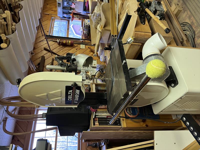 This model is popular for woodworking in small to medium-sized shops. The saw features a heavy-duty steel frame to reduce flexing, a two-speed drive system, and a cast-iron table. It has a 1-horsepower motor that can be wired for either 115V or 230V. The cutting capacity is up to 13-5/8 inches wide and 6 inches thick. It also includes a 4-inch dust port and precision ball bearing blade guides Buyer must pick up from second story woodshop via stairs |
