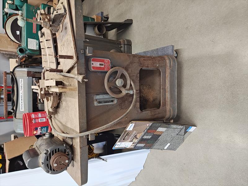 This is a great candidate for restoration,everything is there and original.Don't want to see it scrapped so please be sincere in your desire to restore it.The motor in the pic is not part of it,it still has its original motor in it.The shaper jig goes with it but missing some parts. |