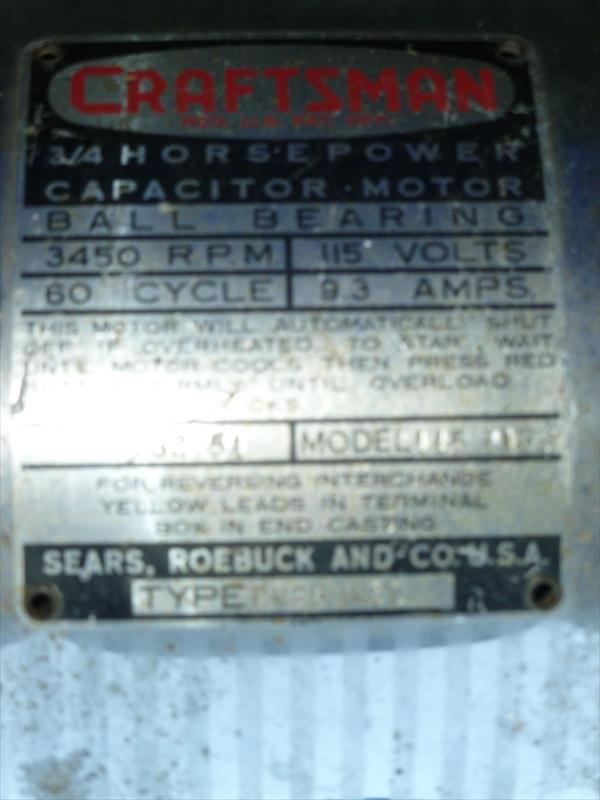 10" Craftsman table saw from the 1950s. Model number is 113.27520. Good condition and powerful! Often described as the best Sears table saw ever produced and a commercial quality saw (see http://www.old-woodworking-tools.net/craftsman-table-saw-model-113-27520.html ). Powerful 3/4 HP capacitor motor, all cast iron components (even the motor housing). Works well. Left end of the fence rack rail is broken. Includes fence, miter gauge,throat plates, and legs.