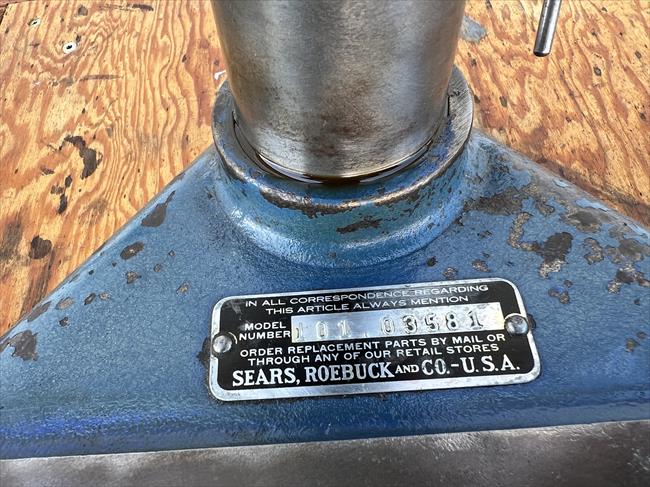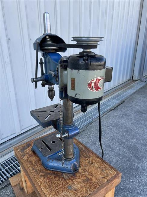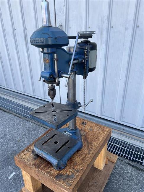 FB marketplace find for $225, the 12.75” bench top version of the 15” floor model (101.03662) that I already had! Seller’s father had it in his print shop for many years, so light duty use and very little corrosion. Jacobs Chuck No.33 in perfect condition. Delta 1/3hp motor is similar age to the drill press but probably not original. Original paint. Only missing part is the second lock nut on the limiter scale. These pictures are after a 3 hour cleaning the day I brought it home.