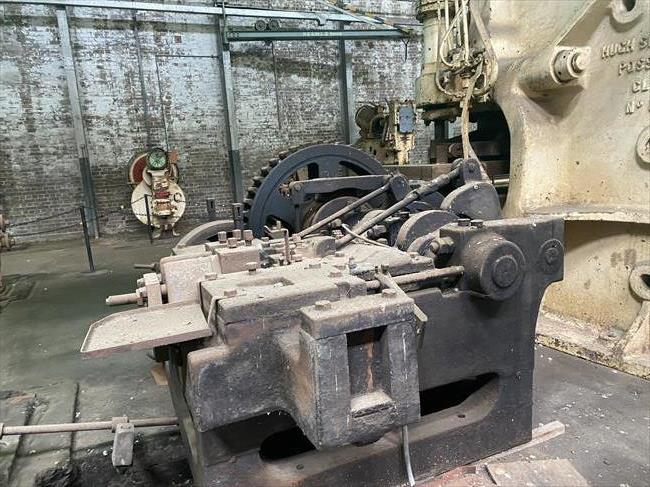 "The machine had adjustments and provision to hold different dies so that bolts, nuts & rivets of different sizes and shapes could be made. However machining and threading of the former two had to be done subsequently on a different machine. The shipyard would probably have purchased common sized nuts and bolts from a wholesaler, but specialised nuts and bolts for shafting, securing machinery and armaments could be made onsite." ]