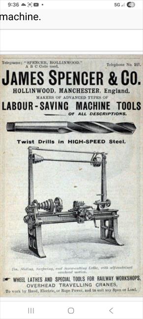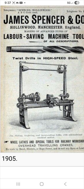 Model only made in 1905 all models made before 1905 had a separate counter shaft mounted on the ceiling. After 1905 all this co lathes came with electric motors.