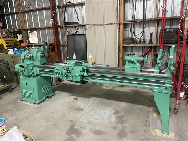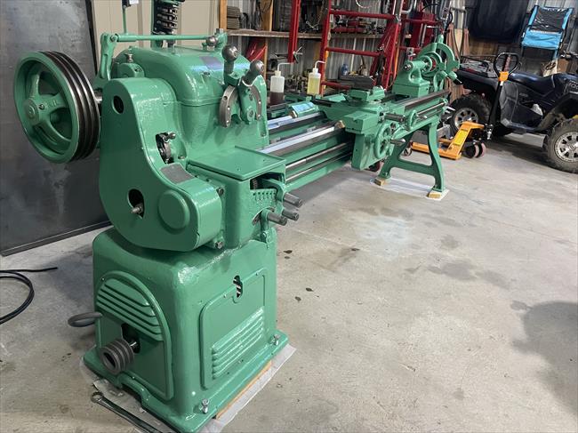 This lathe was in my grandfather’s machine shop (Ajax welding and machine shop) in Brooksville Florida since the 1980’s. When the shop closed in early 2000’s, my father drove down there (from Casper Wyoming) to visit. Not knowing they were clearing out the entire shop, this was the only machine left, and was heading to the scrap yard. My father purchased an enclosed trailer while he was there and loaded it up. He trailered it back to Casper Wyoming where we live. It sat in that trailer for a few years until he built a shop. Then it sat in his shop untouched for several more years. In October of 2024 he asked me if I would be interested in doing something with it. I didn’t hesitate, as I had admired this machine for many years. I had spent a few months working in his shop in 2003 and had ran this lathe a couple times. So my father loaded it up and brought it to my shop on 10-13-24. After tearing it down, cleaning, and repairing many worn parts over the winter, I then painted all parts and got it back together by October 2025.
