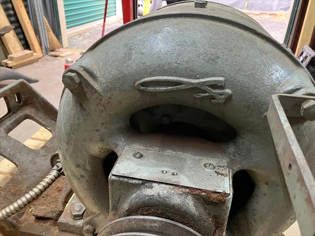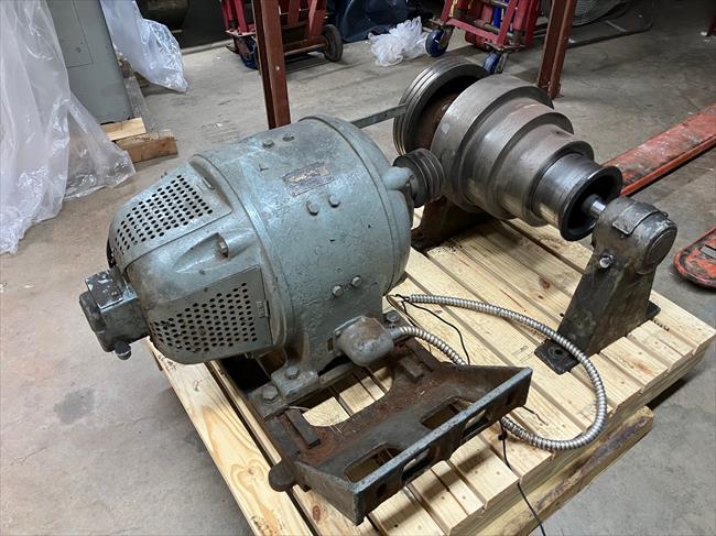 This is a very large (628 lbs.!) 5 H.P. DC motor that formerly powered a large metal lathe.