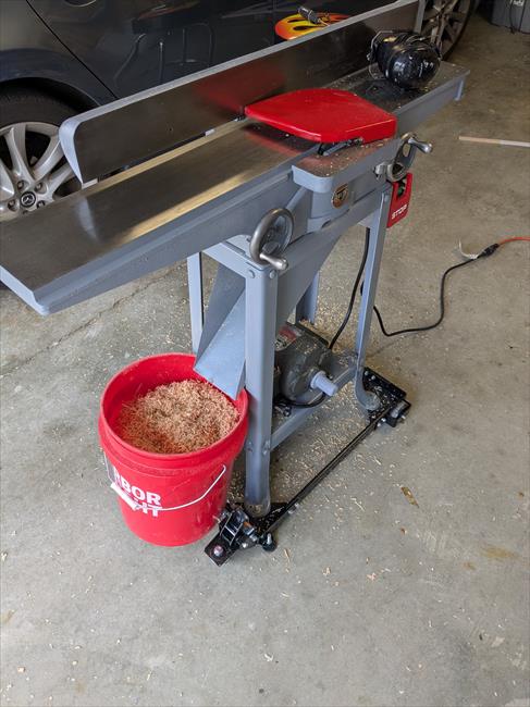 Added a mobile base for maneuverability. Evidence suggests this machine had fallen over before, because the fence clamp sleeve was bent and had to be replaced. The infeed table hand wheel crank was also slightly bent, so I'm betting it was a secondary imp
