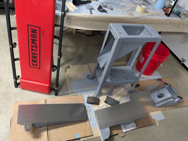 I purchased the machine from a gentleman who inherited it from his grandfather. It included the original splay leg stand and 62-610 motor made by A.O. Smith. It also had a galvanized dust chute, galvanized belt cover, caster kit, and rear table cutter guard (?!?!) that seemed to be of maybe 1980s vintage since they featured the many-digit part numbers of later Rockwell. I assume all of those parts were added later. I sold the caster kit and extra guard to recoup what I paid for the machine. It also had non-standard pulleys (1.75"/6" instead of the original 2.75"/7" combination), resulting in a way too high cutter speed. I bought a replacement dust chute to the replace the absurdly small galvanized one, as well as a 2.25" cutter pulley to get nearly back to the original ratio. At this point, I have decided not to restore the motor, which was a bridge too far after a couple of months restoring the rest of the machine in the evening. I designed a motor shaft cover that I got 3D printed in PLA.
