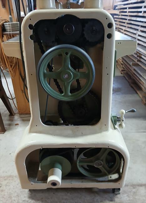I acquired this machine from a defunct cabinet shop in Cape Girardeau, MO. It had pretty good bones and was mostly complete but the deeper I got into the project the more issues I discovered that really needed to be addressed and repaired. The major issues were rust, hairline fractures in some of the more delicate cast iron parts, and a remachined shaft for the Reeves Drive assembly that the manufacturer neglected to drill one of two grease ports that lubricated two needle bearings. This planer was refurbished during the period of November 2024 - November 2025. Please feel free to contact me at anthonymsowell@hotmail.com with questions about the specifics of this machine (i.e. belts, bearings, coatings, Variable Frequency Drive (VFD), methodology, etc.).