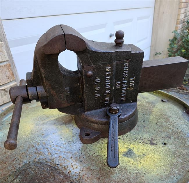This has the swivel base and the swivel jaw. It is in very nice condition... it does need cleaning.