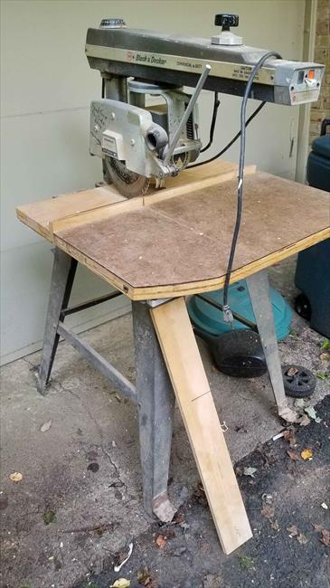 I picked this up for nearly nothing, and it turned out to be one of the workhorses of my early garage shop. I actually liked the engineered improvements, like the quick lever for the arm lock, even though they needed a bit of work to get in operation. This is the only Mr. Sawdust table that I have ever made, and it is rock solid. The other reason I had a hard time letting it go is because it had legs and I could roll it around the shop easily (whereas the 925 had no legs and was heavy to move around). This version of the DeWalt RAS is featured in Jon Eakes's "Fine Tuning Your Radial Arm Saw," and it is capable of doing precise work. The principles apply to other tools, but it was good to learn concepts like positive clamping on this saw.