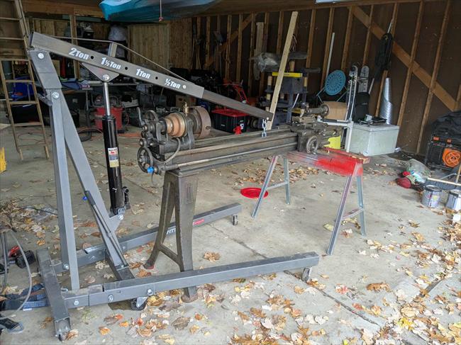 Picture of Early South Bend Metal Lathe from Tailstock End during Unloading