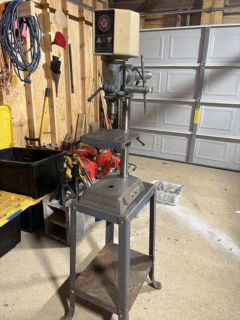Purchased at a horder estate sale in horrendous condition, with an old Packard 1/3hp hanging from homemade straps and the pulley inverted. I haven't had much luck dating from the SN.