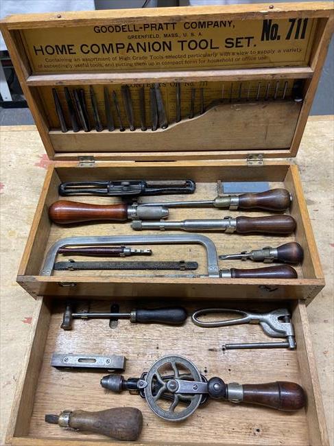 I acquired this tool box at an antique tool auction around 2020. It was mostly complete but missing a few hard to find tools. It took me a few years but the box is now complete.