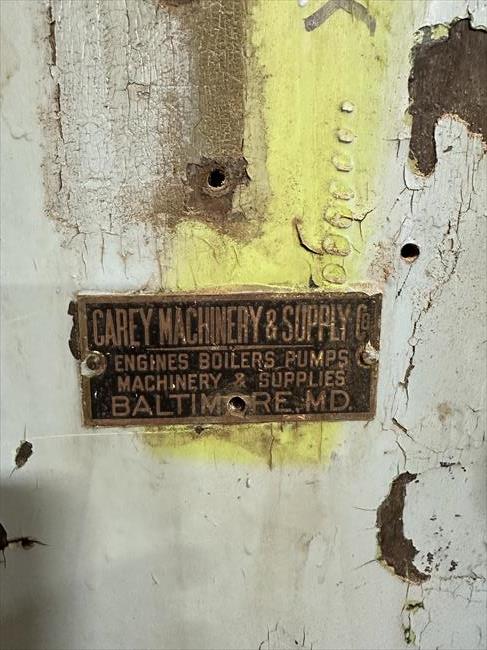 The second oldest Carey Machinery nameplate I've seen. I love how whoever drilled that hole indexed it on the "O" in Baltimore.