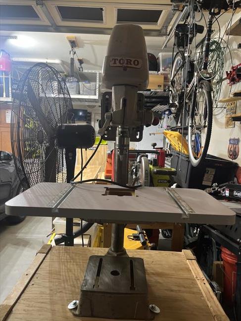 The drill press was given to me by a friend. I live in Arizona and a snowbird from Michigan had to move back home so he gave it to me. It works so well that I got rid of my Harbor Freight drill press and use this one as my primary. I do need to replace the feed handle two of the arms were broken off. And a thrust collar above chuck is missing. But is a very solid machine. My goal is to eventually refurbish it sandblast it and paint it.
