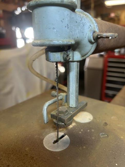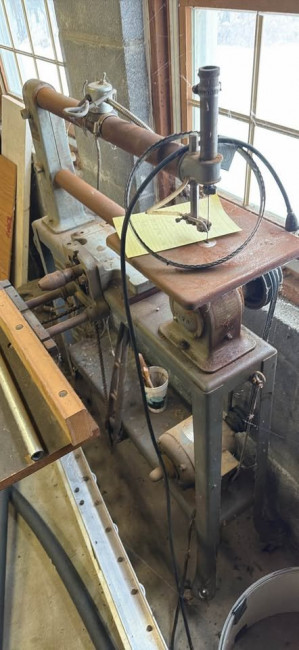 This saw also has a the Delta 458 Mortiser installed on it. I thought it was just something the owner installed but I saw in the old catalogs that Delta sold these combination machines which included the mortisers, and there was one that was the Model 700 scroll saw and mortiser combo. This is the one I now have. Mine is set up with the Drill chuck and is missing all the hold down parts and any mortising chisels etc., but it appears to be in good shape under the sawdust and grime, and does have the foot pedal option.