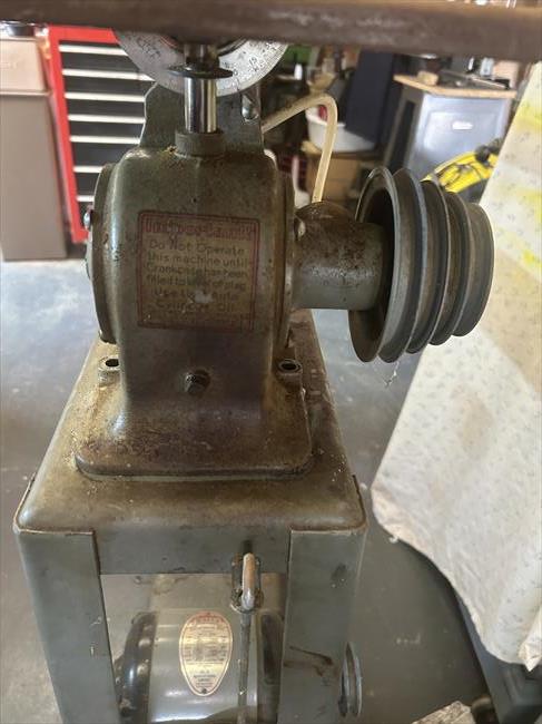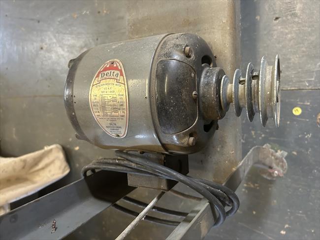 I picked up a Delta Model 700 Scroll Saw for $50 because I wanted to motor and possible the welded stand, but of course the saw is in much better shape than I thought and appears to be original and complete. The original paint and decals look good under the grime! Not sure yet what I will do with it. Looking through the old Delta catalogs, I see that the earlier Model 700 saws had a single pulley on the saw and motor but the 1937 catalog shows a cone pulley on the motor and saw and advertises "multiple speeds". Looks like mine is one of these later 700 saws. Saw came with several vintage packages of blades and what looks like the original Delta hex tool for tightening the blade chucks.