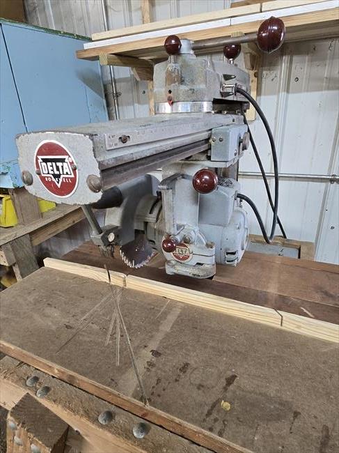 I got this saw from a rummage sale for $15. I was surprised for th3 price that it had a decent table, the rip pahl and a sturdy rolling stand. It didn’t”t much other than a good cleaning, a bit of loosening and lubrication and some adjustments. I put it use right away cutting 2x8’s for stall walls and fronts in our new horse barn. It struggled a little if I tried to go too fast, but overall it dis a great job. It was portable enough to get it to the job and strong enough to get it done. It is the smallest of my 5 radial arm saws, but it’s really found it’s place.