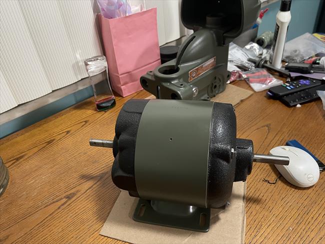 Done, runs smooth and quiet. Switch box came with a hammer switch, I made a new switch box cover to fit a regular toggle switch