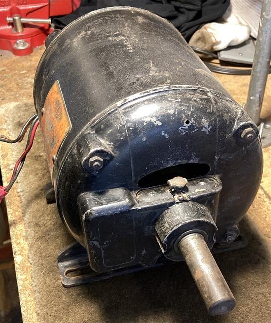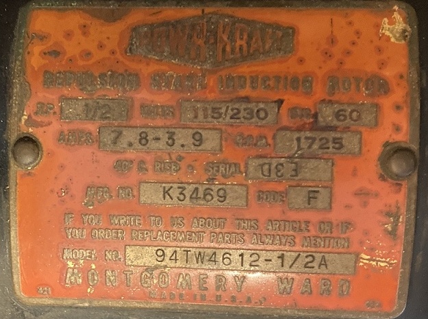 This repulsion-start induction motor was made by Wagner (model K3469) - I also have a Wagner-branded motor that is almost identical. 3/4" shaft; see ID plate for other specs. On the ID plate, note how the "serial" is stamped upside-down.