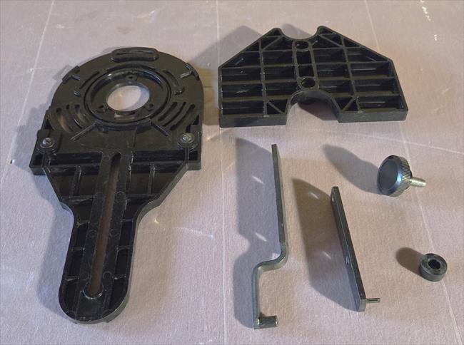 Comments: Given to me from my father around 2004. No idea where he got it from. Never saw it in his house or seen him use it. This was given to me at the same time as the Craftsman Router 315.17310 which was manufactured in 1981. The instruction guide that came with this router guide has a date of Sept. 1980, but the instructions for the router has a date of May 1981. I suspect then, that this guide was purchased from Sears in 1981. The 1979 catalog does not include this item. There is no Sears 1980 Catalog posted yet; this accessory may have first, been included in that year's catalog. The 1981 Catalog (page 17) is the first documentation I could find at $14.99. This item was still in the 2004-2005 Sears Catalog, at $19.99. When I received this Multipurpose Router Guide all of the parts came loose in a box, along with other tools. I had no idea what all of the parts were for, but I kept them thinking someday I might figure out what they were for. Lucky for me the 9-25179 Owners Manual came with this accessory. While taking pictures this week of this router guide I opened the manual and saw diagrams of these parts that I never new what they were for. Miraculously, I was able to find all of the parts diagrammed in the manual, scattered in four completely different drawers and work benches. I have titled all of the parts in the first photo.