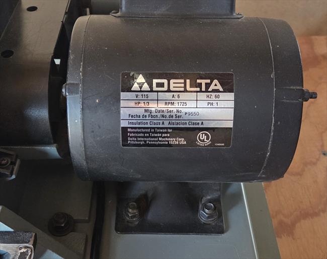 Purchased this Delta 1" Belt / 8" Disc Sander in 1995. Bolted it to wooden top, on top of the Delta Model 50-330 Universal Stand. I have found this in Delta Catalogs from 1991 to 2000. Since 2000 I have seen this exact frame and model of a sander sold under other manufactures names. Not sure of the full history. I could not find an info plate on the sander, only the plate for the motor.