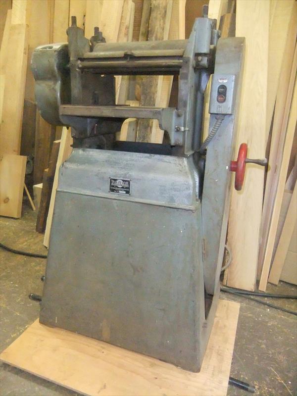 Appears to be all original with factory base and Peerless motor (1ph; 2hp; 26-13amp; 1750rpm; 115 or 230 volt) Presently wired for 230 volt. Motor runs nicely. Sold by the H. Leach Machinery Co. of Providence, RI probably to the Newport RI school system where this planer came from when I purchased it. Tables are flat so probably lightly used. Gears in gear box are in good shape. Gear box could use some gaskets to control oil seepage. This planer could likely be used as is with minor work and elbow grease, but is also a great candidate for a straight up renovation. |