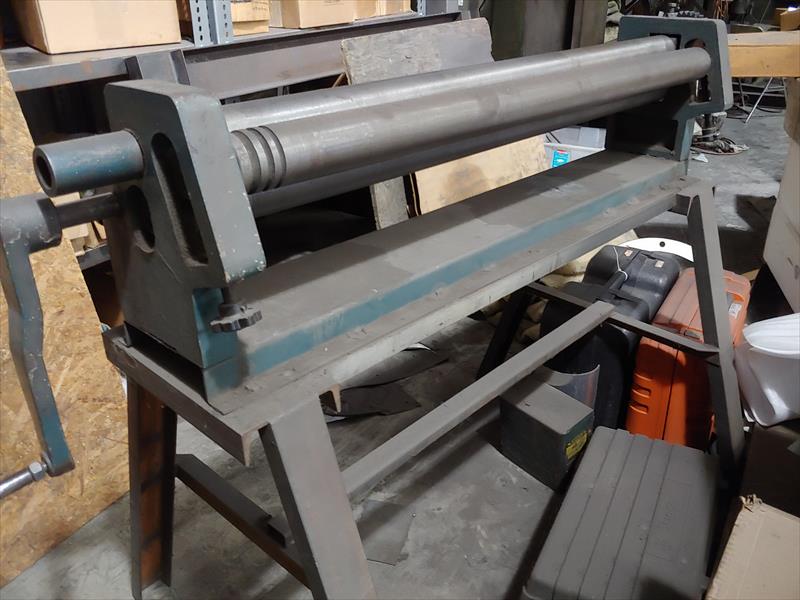 Sheet metal rolls, 3" rollers X 50" wide, hand crank powered, no manufacturer identification found. Probably 10 ga capacity full width, thicker for narrower parts. Best offer. |