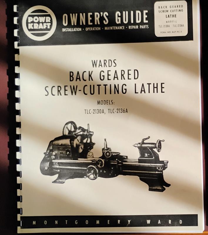 This 24 page manual deals with the Montgomery Ward Back Geared Screw Cutting Lethe ModelsTLC-2130A and TLC-2136A. Manual is free, I just need $10 to cover shipping. |