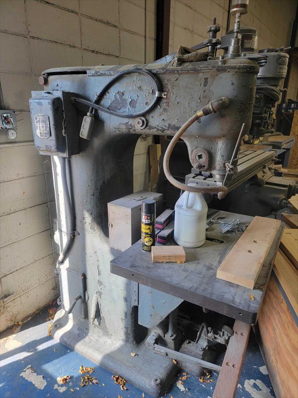 Onsrud Pin Router (overhead) NOt sure of the year... probably 1940's Type W240, Serial No. 3061 Manufactured by Onsrud Machine Works, Inc. Engineers and Machinists 3900 Palmer St. - Chicago, ILL Still works. Decommissioned when we purchased a CNC router. Hoping to give it new life. |