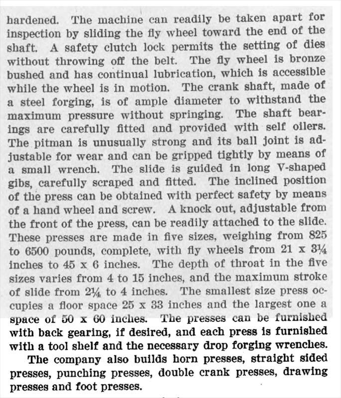 1906 article - Zeh & Hahnemann Inclinable Power Press