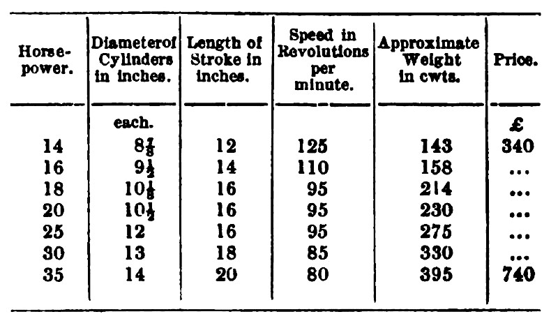 1878 Marshall, Sons & Co., Double Cylinder Portable Steam Engine (Specifications Chart)