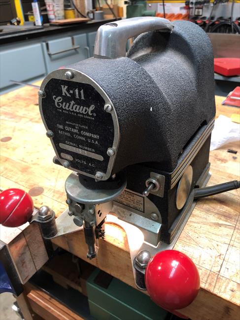 This is a Cutawl K-11 used in many industries to cut fabric, sign making. This is a newer model, still manufactured today.