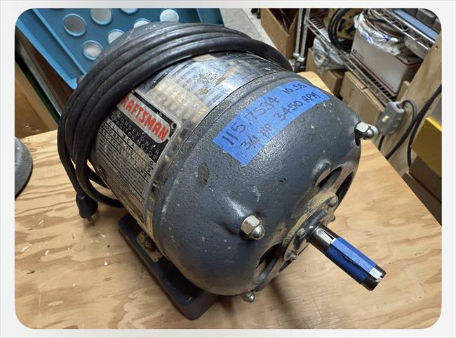We picked this table saw up during ArnFest 2025 just a few miles from the Illinois Railway Museum. It works fine. I assembled it when we got back home and did a small project with it that same day. I also got a 3/4 Hp motor from a fellow OWWM'r, 115.7535, and hold downs, and a moulding blade set. At the swap meet I got a dado set, wrenches, Hold Downs in the box, and moulding and dado guard still in the box. I had planned to put the older motor on the saw that day, but noticed a break in the motor mount (Cradle). The current motor is a 1 HP 113.12170 and much lighter so I'm leaving that in place until restoration. I already have a new (old) cradle to use for the restoration. I actually moved my 10" Grizzly to the back of the shop because my plan is to use the Craftsman going forward. A big shout out to Suzy for finding this for me and for being such a cool partner in hunting vintage tools.