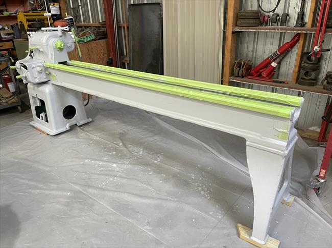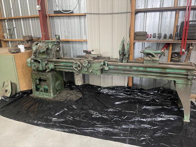 This lathe was in my grandfather’s machine shop (Ajax welding and machine shop) in Brooksville Florida since the 1980’s. When the shop closed in early 2000’s, my father drove down there (from Casper Wyoming) to visit. Not knowing they were clearing out the entire shop, this was the only machine left, and was heading to the scrap yard. My father purchased an enclosed trailer while he was there and loaded it up. He trailered it back to Casper Wyoming where we live. It sat in that trailer for a few years until he built a shop. Then it sat in his shop untouched for several more years. In October of 2024 he asked me if I would be interested in doing something with it. I didn’t hesitate, as I had admired this machine for many years. I had spent a few months working in his shop in 2003 and had ran this lathe a couple times. So my father loaded it up and brought it to my shop on 10-13-24. After tearing it down, cleaning, and repairing many worn parts over the winter, I then painted all parts and got it back together by October 2025.