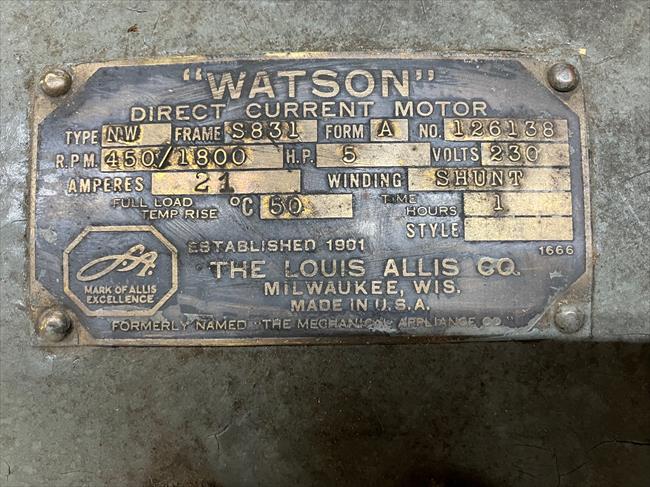 This is a very large (628 lbs.!) 5 H.P. DC motor that formerly powered a large metal lathe.