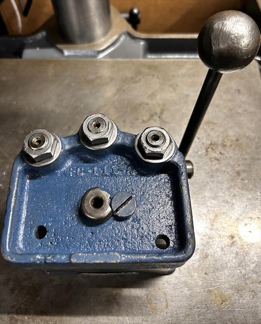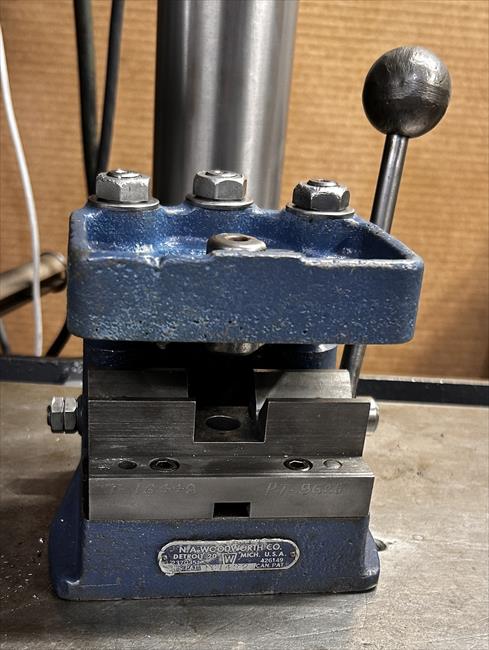 Cross drilling jig for round stock utilizing removable drill bushing. Acquired in an auction lot. Note company address is prior to 5 digit zip code use.