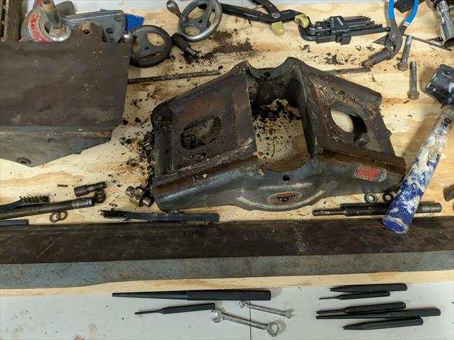 Added a mobile base for maneuverability. Evidence suggests this machine had fallen over before, because the fence clamp sleeve was bent and had to be replaced. The infeed table hand wheel crank was also slightly bent, so I'm betting it was a secondary imp