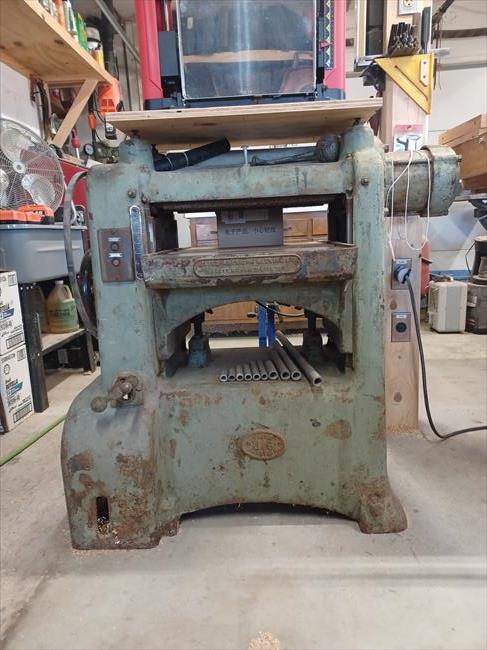 I acquired this machine from a defunct cabinet shop in Cape Girardeau, MO. It had pretty good bones and was mostly complete but the deeper I got into the project the more issues I discovered that really needed to be addressed and repaired. The major issues were rust, hairline fractures in some of the more delicate cast iron parts, and a remachined shaft for the Reeves Drive assembly that the manufacturer neglected to drill one of two grease ports that lubricated two needle bearings. This planer was refurbished during the period of November 2024 - November 2025. Please feel free to contact me at anthonymsowell@hotmail.com with questions about the specifics of this machine (i.e. belts, bearings, coatings, Variable Frequency Drive (VFD), methodology, etc.).