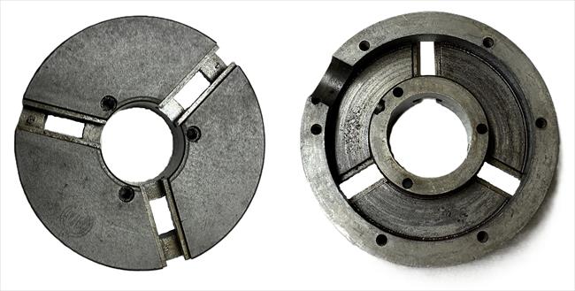 I got a box off chucks while cleaning out a friend’s garage. No history is known. This scroll chuck has the Gisholt logo on the front and the number 19463 on the back. I was only able to find one reference of this chuck in the 1917 Gisholt Turret Lathe Guide for Care and Tooling, page 36. It is not a spindle chuck but a turret chuck.